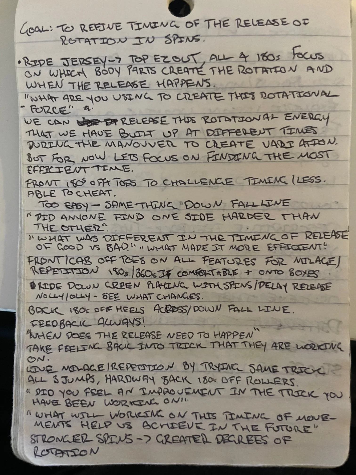 I have lost the lesson plan I did for this session because, I believe, it was on a napkin. Which already tells you a lot. By the end of the session they were to have a better understanding of how to teach their students to self analyse. I picked the park as the environment for its obvious outcomes and clear cause and effect. What maneuver, trick or features we used are irrelevant. I let the group define the challenge level, gave them the freedom to try things and made them practice working backwards from the outcome of how the maneuver felt to find the cause of the issue.